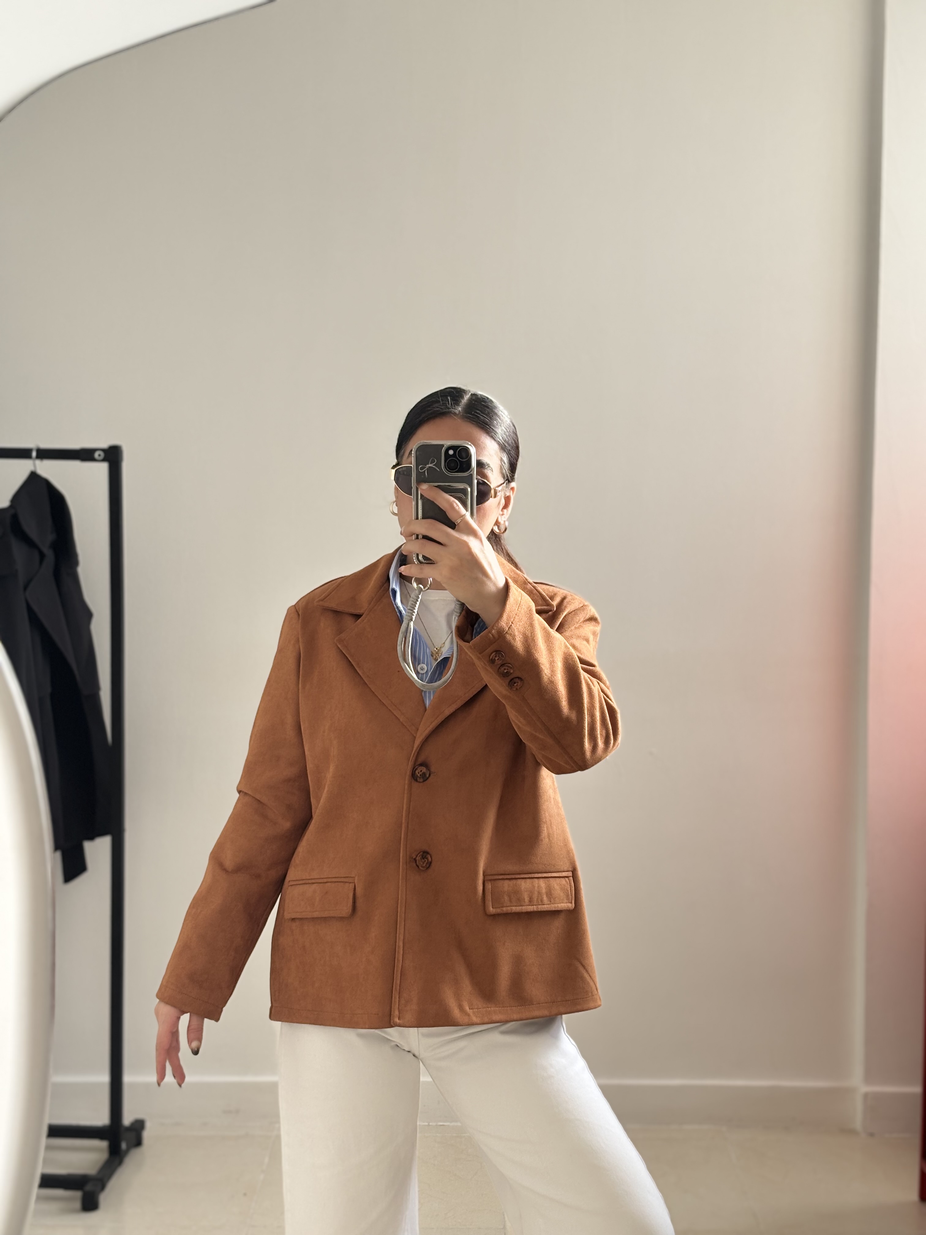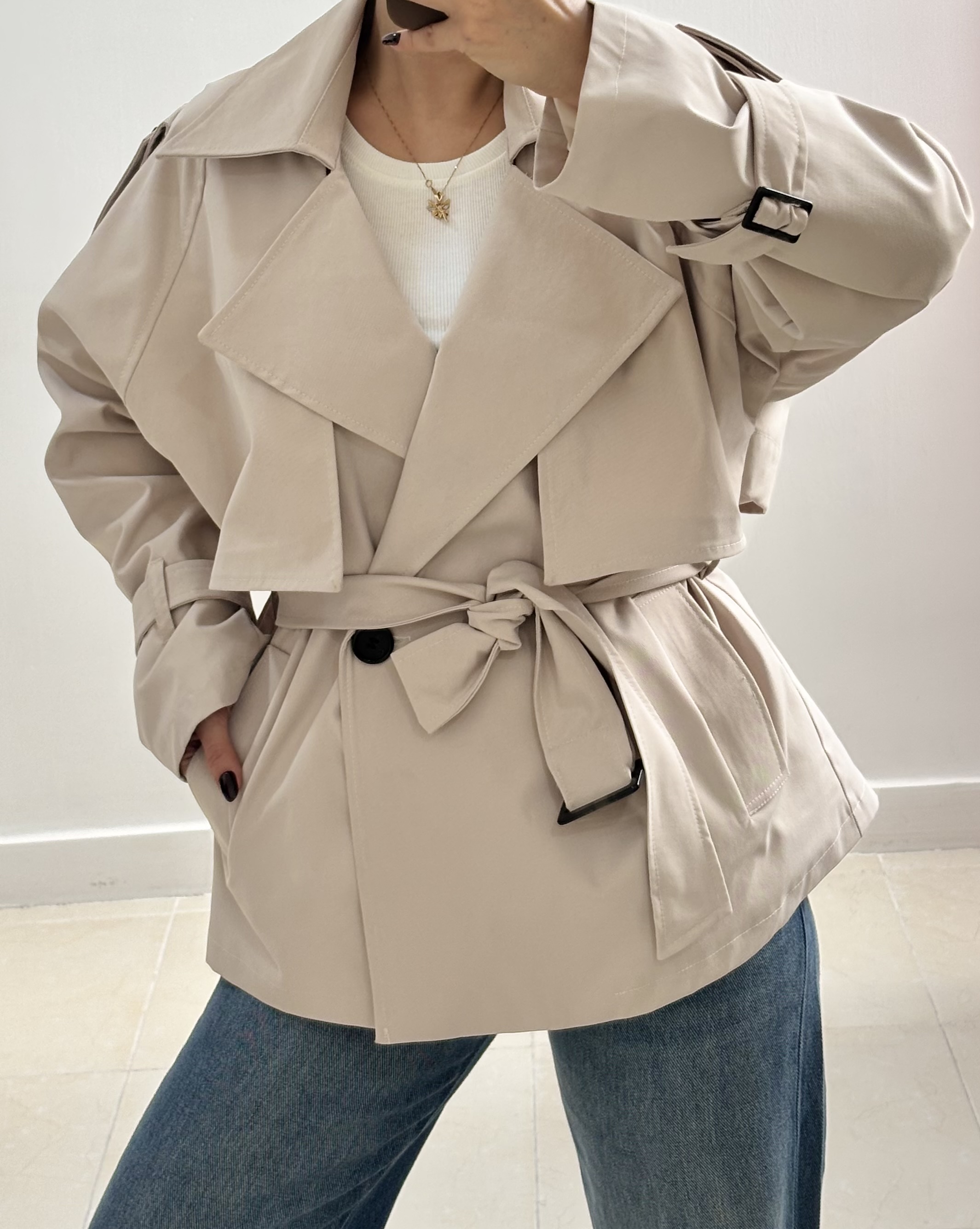 کت زنانه جیر کوتاه شتری رنگ فری سایز