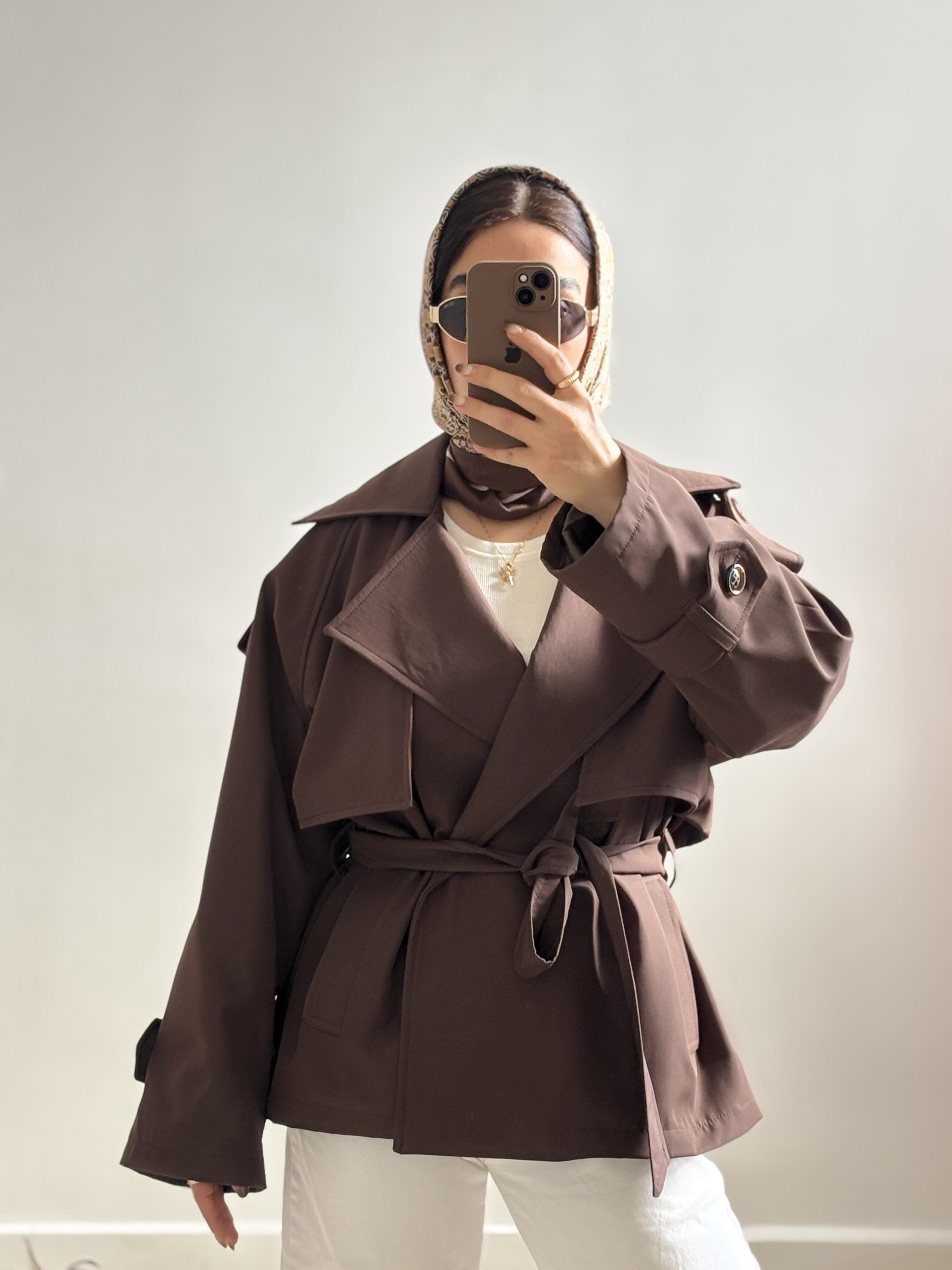 کت زنانه اُورسایز بلند قهوه ای ترند