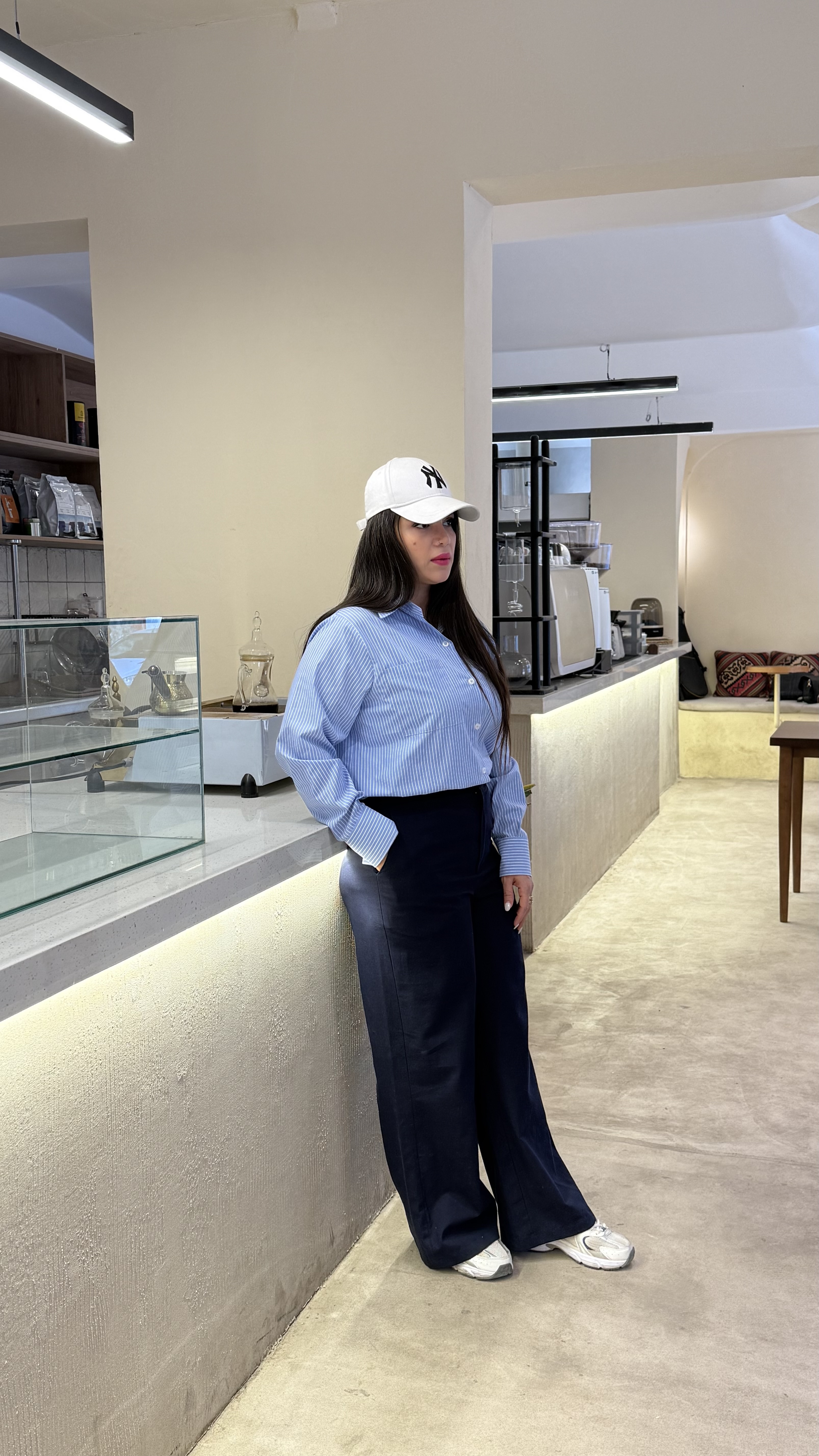 شومیز زنانه بیسیک لینن آبی آسمانی با کیفیت
