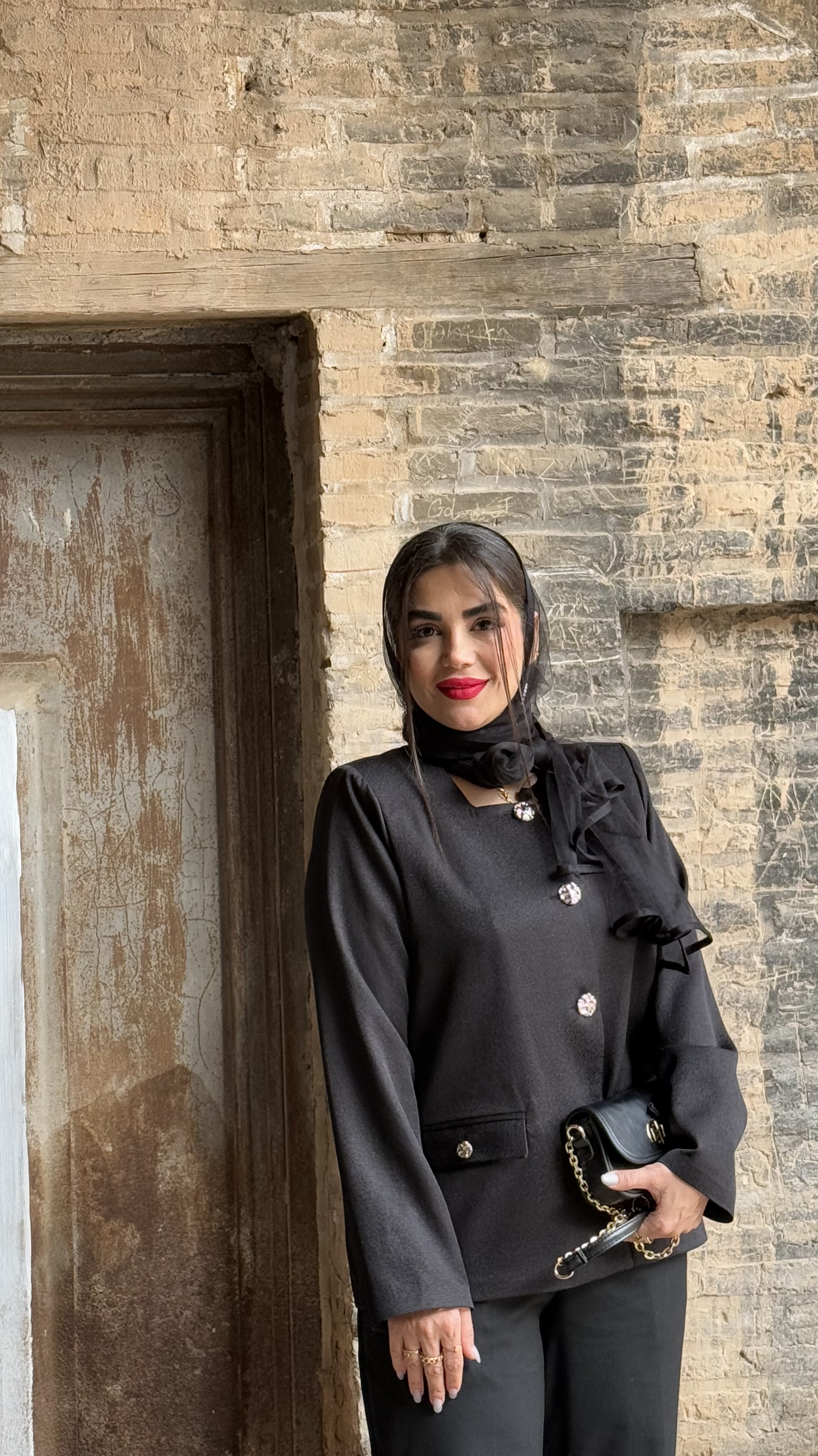 کت زنانه مشکی کرپ رنگ فری سایز ۳۶ تا ۵۰