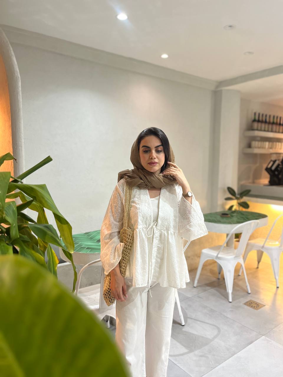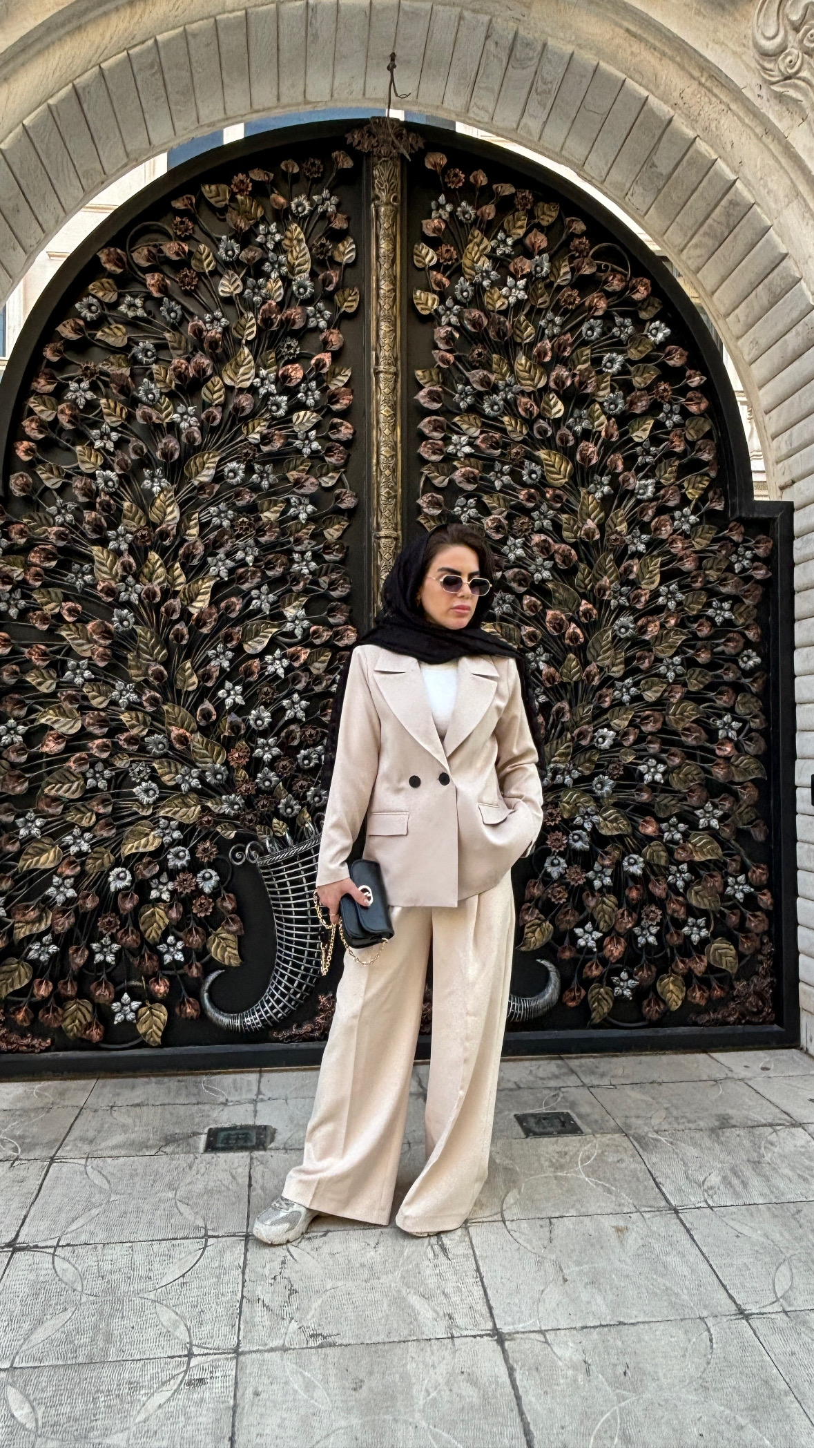 کت وشلوار زنانه مازراتی استخونی با کیفیت فری سایز از ۳۶ تا ۵۰