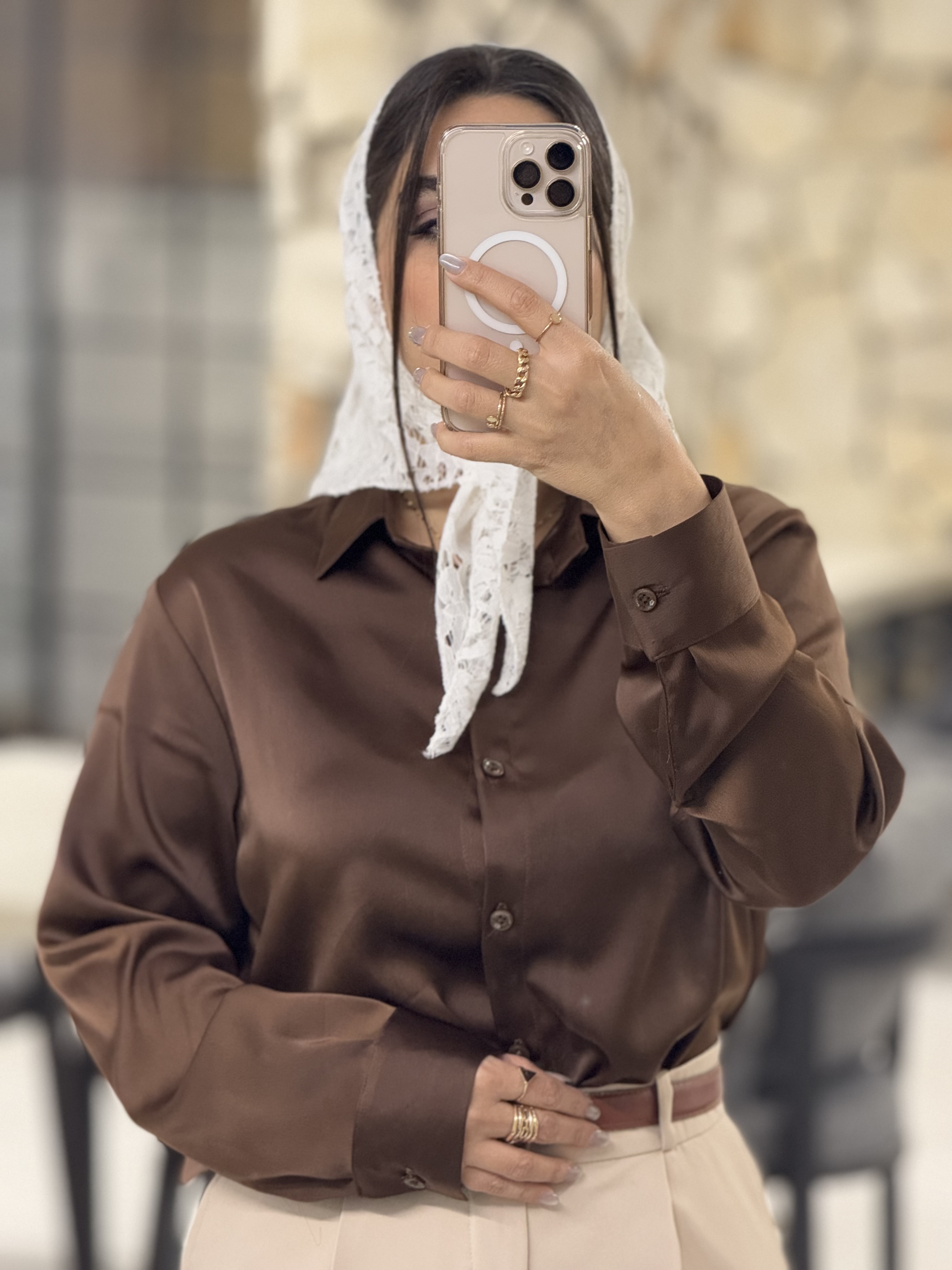 شومیز زنانه ساتن زارا قهوه ای فری سایز از ۳۶ تا ۵۰